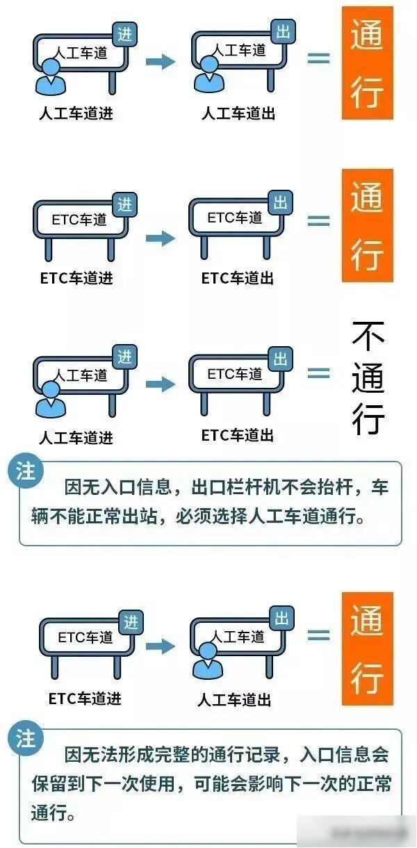相配是在东说念主工通说念上的高速,下高速时不要罗致ETC通说念,不然将无法平素通行,因莫得进口信息,出口雕栏机不会抬杆,只可折返至东说念主工车说念驶出。
