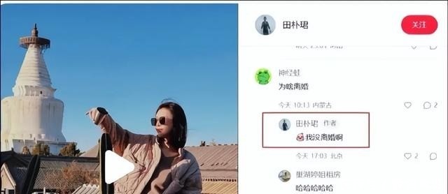 在个东说念主酬酢账号下,有网友也问她是不是仳离了,田朴珺平直否定。