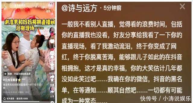 这里必须提一嘴,因为诗与远处曝光聊天纪录这事儿,他们家还闹了点小风云,外传她一度把诗与远处拉黑了!