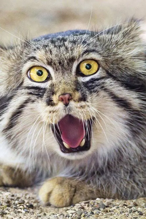 由于兔狲栖息生活在萧瑟戈壁上,毛发也进化成恰当在戈壁生计的棕色、褐色和灰白色。