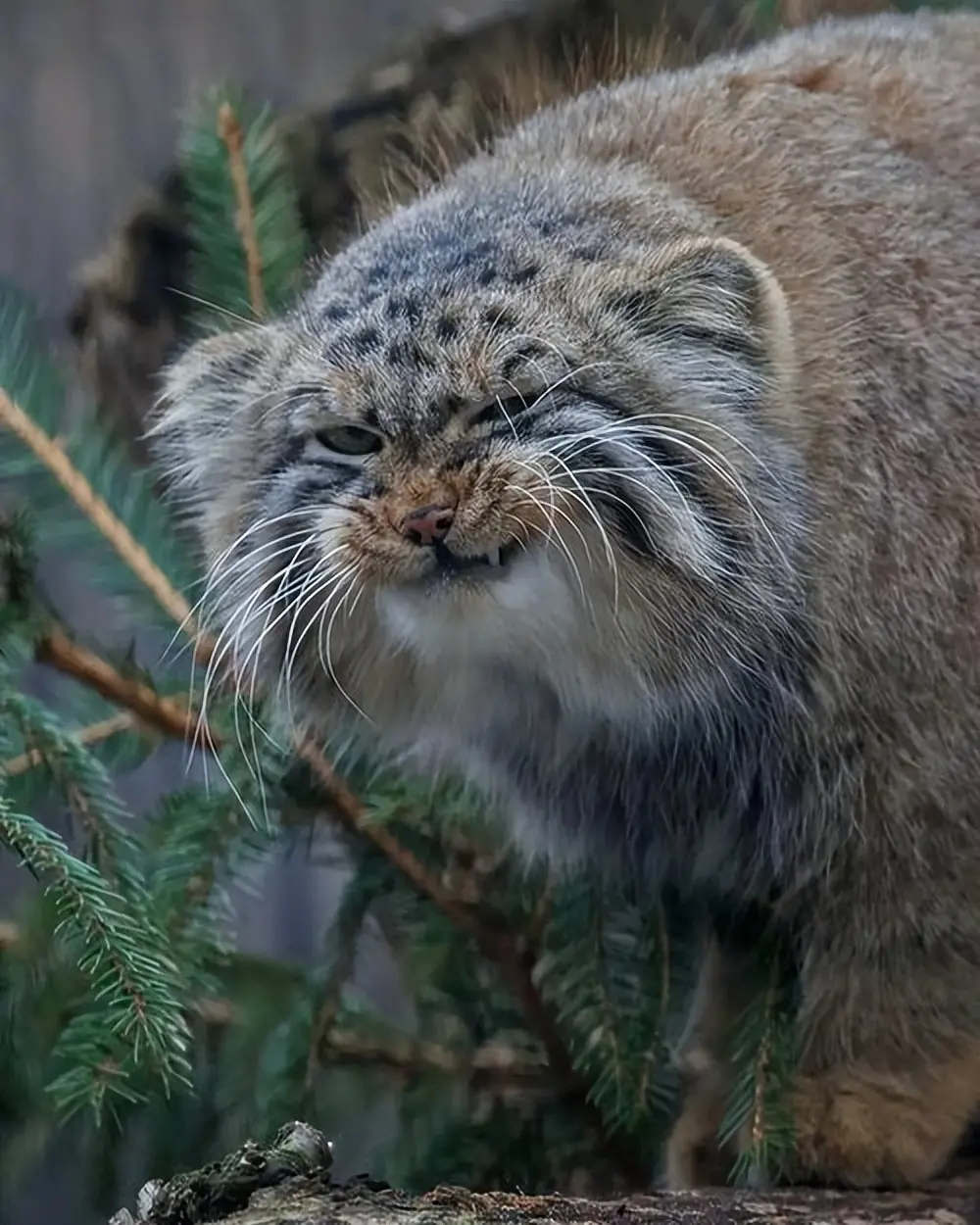 兔狲圆头圆脑,工致可儿的耳朵嵌入在脑瓜子两侧,眼睛大而圆。除了长相可儿除外,兔狲最诱惑东谈主的等于古灵精怪的颜料。