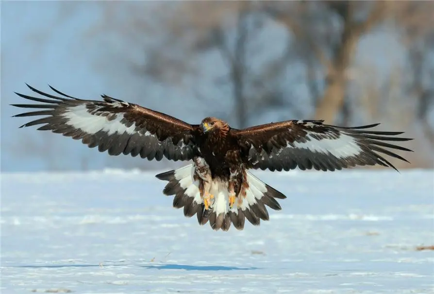 兔狲并不是金雕餐谱上的最优选,但金雕最心爱的等于从兔狲嘴里抢食。再生动的陆地生物被金雕执到天上独一仍雕宰割的份,金雕会用我方有劲的爪子将兔狲带到天外,然后高高抛下,此时不会飞的兔狲独一被摔成肉饼的份。