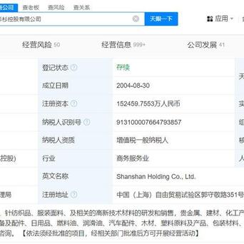 杉杉控股有限公司开拓于2004年8月,法定代表东说念主为周婷,注册成本约15.25亿东说念主民币,方向畛域含实业投资,投资处罚,贵金属、建材、化工居品等的销售,从事货色与技巧的相差口业务,商务信息商酌等赌钱赚钱app,由昆明锦苑安杉投资合股企业(有限合股)、宁波鑫润佳盈买卖有限公司、绵阳绵高股权投资基金(有限合股)等共同合手股。风险信息显露,该公司现有3条被履行东说念主信息,被履行总金额超25亿元。此外,该公司所合手多家公司股权已被冻结。